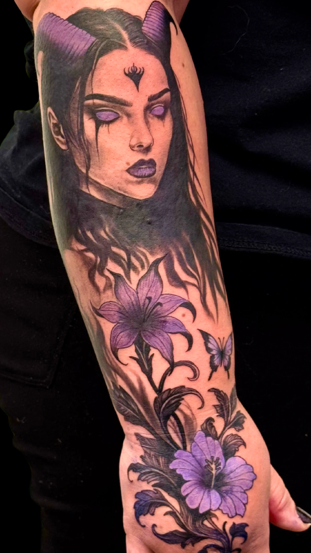 Whether you’re drawn to bold black and grey work, gothic symbolism, or a modern twist on traditional style, every tattoo you see here was designed with one person in mind: the client who wears it.
